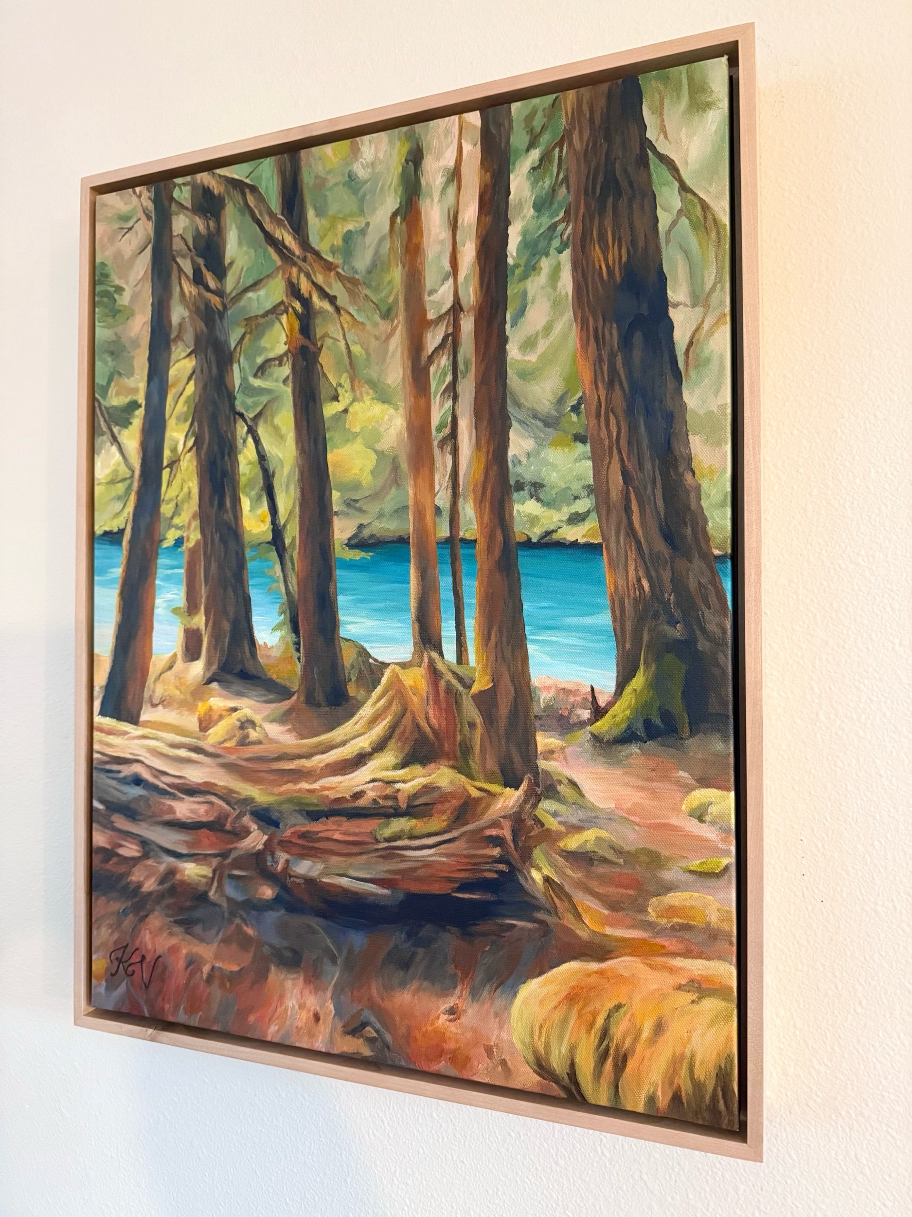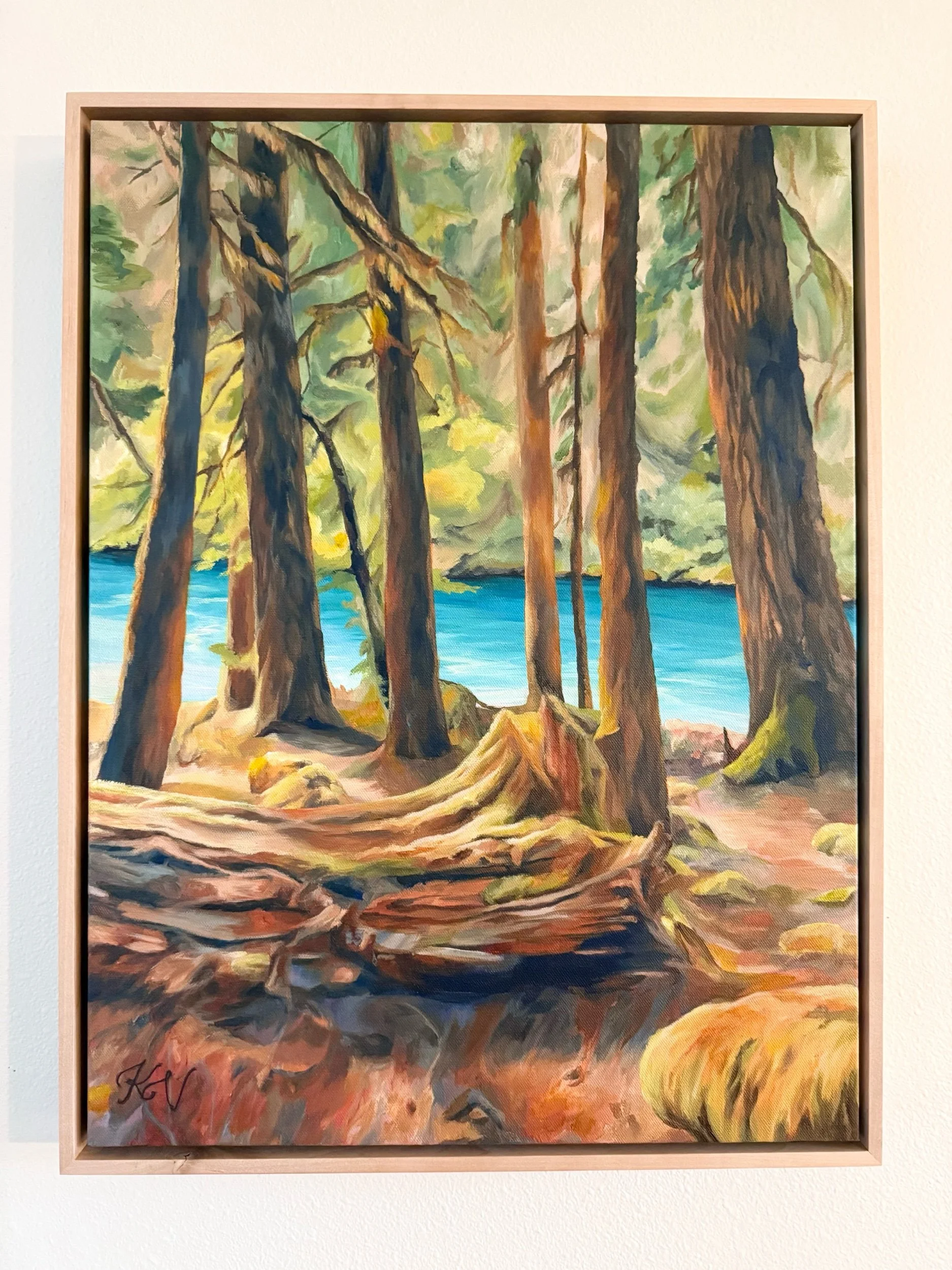 Original 18”x24” acrylic painting on canvas, in birch wood float frame.